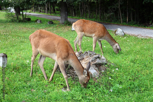 Fototapeta premium Roe deer grazing in the early evening in Tatranska Lomnica, High Tatras, Slovakia.