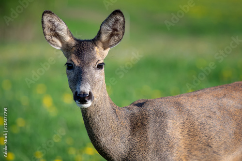 Fototapeta premium Roe deer in grass, Capreolus capreolus. Wild roe deer in spring nature.