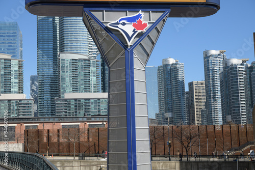 © eugen, Fototapeta premium Rogers Centre Gardiner LED pylon sign structure with Toronto Blue Jays logo (west facing side) at Rees St and Bremner Blvd