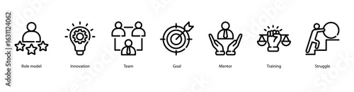 Fototapeta premium Role Model web banner icon vector illustration featuring Role Model, Innovation, Team, Goal, Mentor, Training, and Struggle.