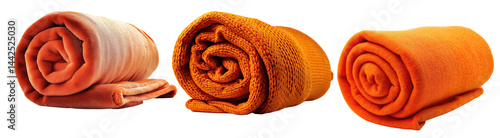 © Kanurism, Fototapeta premium Rolled Orange Towels With Varying Textures isolated on a transparent background