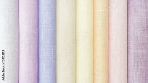 © Ismi, Fototapeta premium Rolled pastel fabric samples display various colors and textures