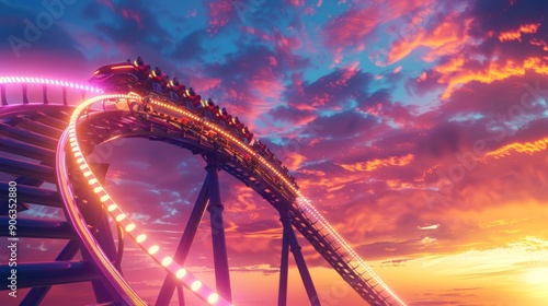 © fajar, Obraz premium Roller Coaster Ride at Sunset