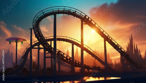 Obraz premium roller coaster tracks at sunset