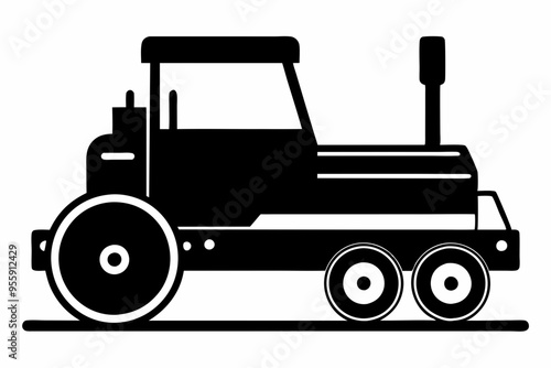 Naklejka premium roller machine silhouette, Road roller vector illustration, Construction vehicle