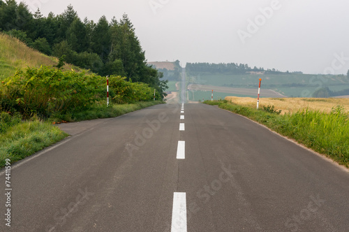 © aaron90311, Fototapeta premium Rollercoaster road in Biei, Japan. Taken under Summer sunset.