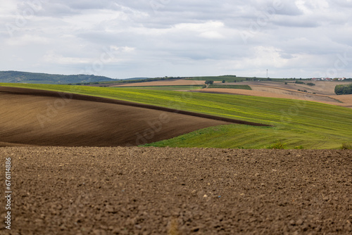 © DriveAndDive, Obraz premium Rolling Fields under Overcast Skies