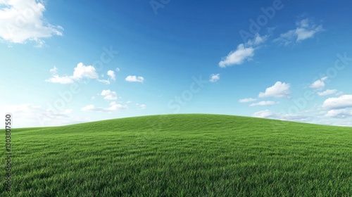 Obraz premium Rolling green hill, sunny sky, meadow, idyllic landscape, nature, background,...