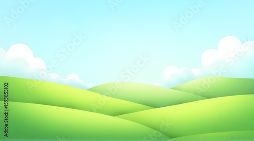 Obraz premium Rolling Green Hills and Blue Sky Cartoon Landscape Background