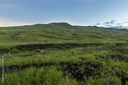 © dhayes, Fototapeta premium Rolling green hills, covered with grass at dawn on Hawaii's Big Island.