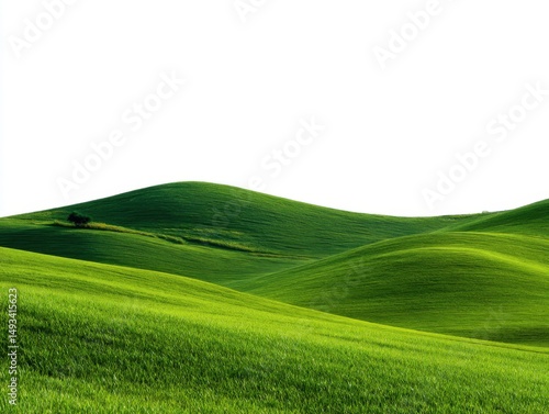 © Sarinya, Naklejka premium Rolling green hills landscape in Tuscany Italy during spring time aerial view of idyllic countryside nature background