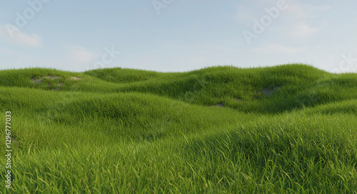 © Minh, Obraz premium Rolling Green Hills Landscape Under a Bright Sunny Sky