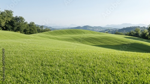 Fototapeta premium Rolling green hills, summer landscape, scenic view, peaceful countryside