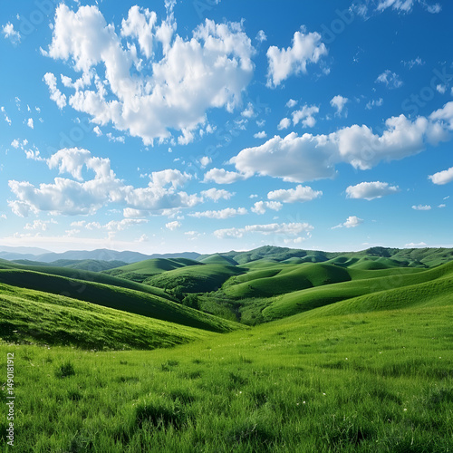 © MdAtiqur, Fototapeta premium Rolling Green Hills under a Blue Sky