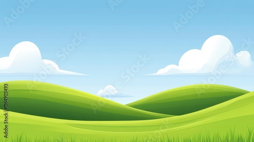 Obraz premium Rolling Green Hills Under a Blue Sky With Clouds