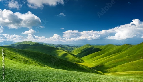 Obraz premium rolling green hills under a blue sky with white clouds