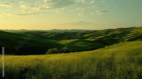 © Rere_Art151, Obraz premium Rolling Green Hills Under a Cloudy Sky