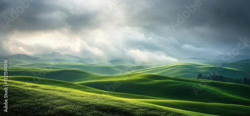 © Tabs, Obraz premium Rolling Green Hills Under a Cloudy Sky