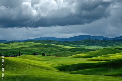 Obraz premium Rolling green hills under a dramatic sky