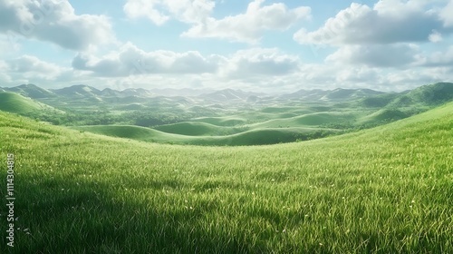 © Handz, Fototapeta premium Rolling Green Hills Under a Sunny Sky