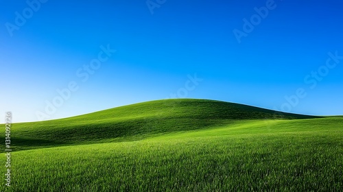 Naklejka premium Rolling green hills under a vibrant blue sky.