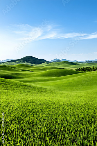 Fototapeta premium Rolling green hills under a vibrant blue sky