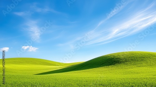 © chesleatsz, Fototapeta premium Rolling Green Hills Under a Vivid Blue Sky