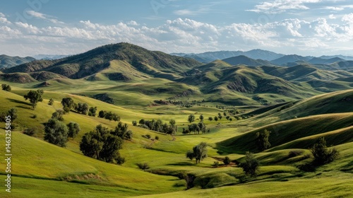 © wahyu, Obraz premium Rolling green hills under clear sky
