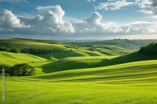 Obraz premium Rolling Green Hills under Cloudy Skies
