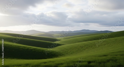 Fototapeta premium Rolling green hills under cloudy sky rolling hills green grass