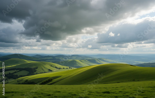 Obraz premium Rolling Green Hills Under Dramatic Sky