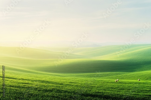 Obraz premium Rolling Green Hills With Sheep Grazing Peacefully