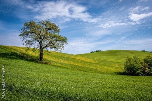 Obraz premium Rolling Green Hills With Single Tree