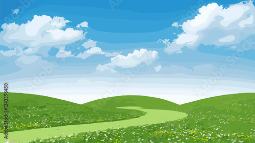 © PixeloAI, Obraz premium Rolling Green Hills with Winding Path