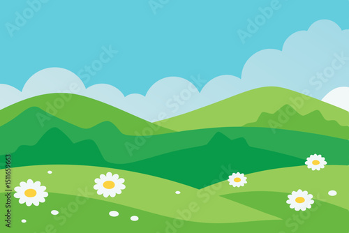 Fototapeta premium rolling green meadow with daisies hills stretchin