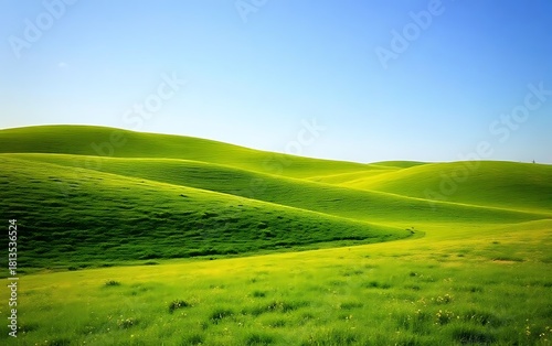Obraz premium Rolling Green Meadows Under Clear Summer Sky.
