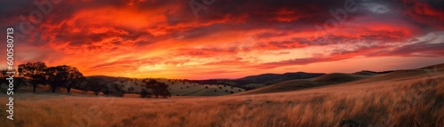 © ArtStage, Obraz premium Rolling hills against a vivid sky. Horizontal banner. AI generated