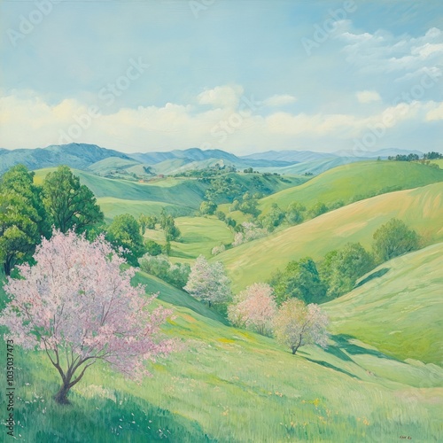 © sok, Fototapeta premium Rolling hills and valleys in springtime