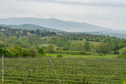 © Jeroen Kleiberg, Obraz premium Rolling hills and vineyards under a misty sky