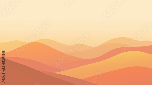 Obraz premium Rolling hills bathed in warm sunlight create a serene and minimalist landscape, with a gradient of colors ranging from deep oranges to soft yellows, evoking a sense of peace and tranquility