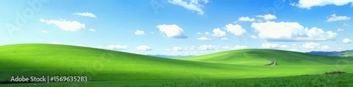 Fototapeta premium Rolling hills blanketed by ethereal clouds beneath a clear azure sky ,...