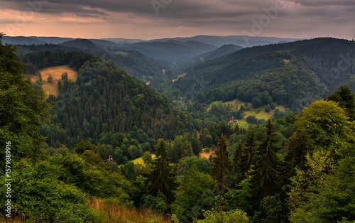 © vero, Obraz premium Rolling hills dense forest aerial view