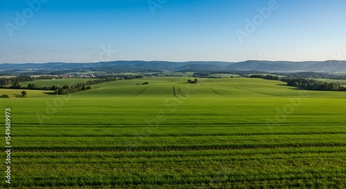 Fototapeta premium Rolling hills, Green fields, Farmland, Rolling Green Hills and Farmland Under a Clear Blue Sky