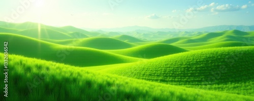 Obraz premium Rolling hills of emerald grass, soft light, abundant growth , field, scenic