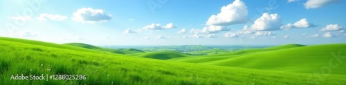 © Prasert, Naklejka premium rolling hills of green grass meet the open sky, landscape, clouds