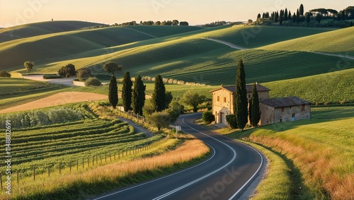 Naklejka premium Rolling Hills of Tuscany, Italy at Sunrise, Captured in Beautiful Detail,...