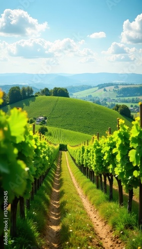 Fototapeta premium Rolling hills, sun-drenched vines, French countryside, landscape, mediterranean