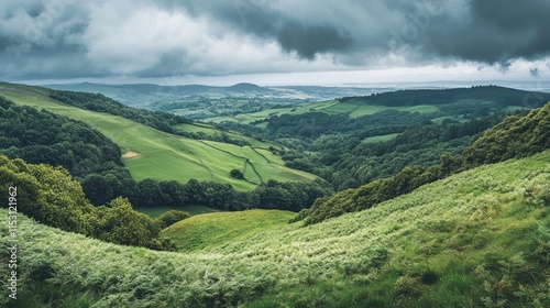 © L. S A N Z, Fototapeta premium Rolling Hills Under a Dramatic Sky