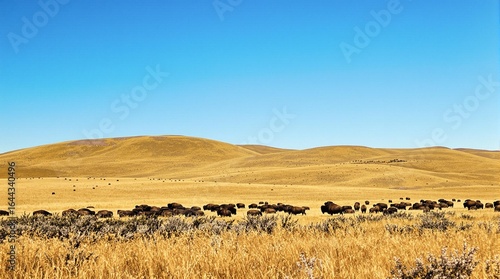 © Nidhal Ben bouziane, Obraz premium Rolling Hills with Bison Herd