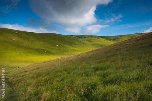 © marcin jucha, Obraz premium Rolling hills with blue sky with clouds